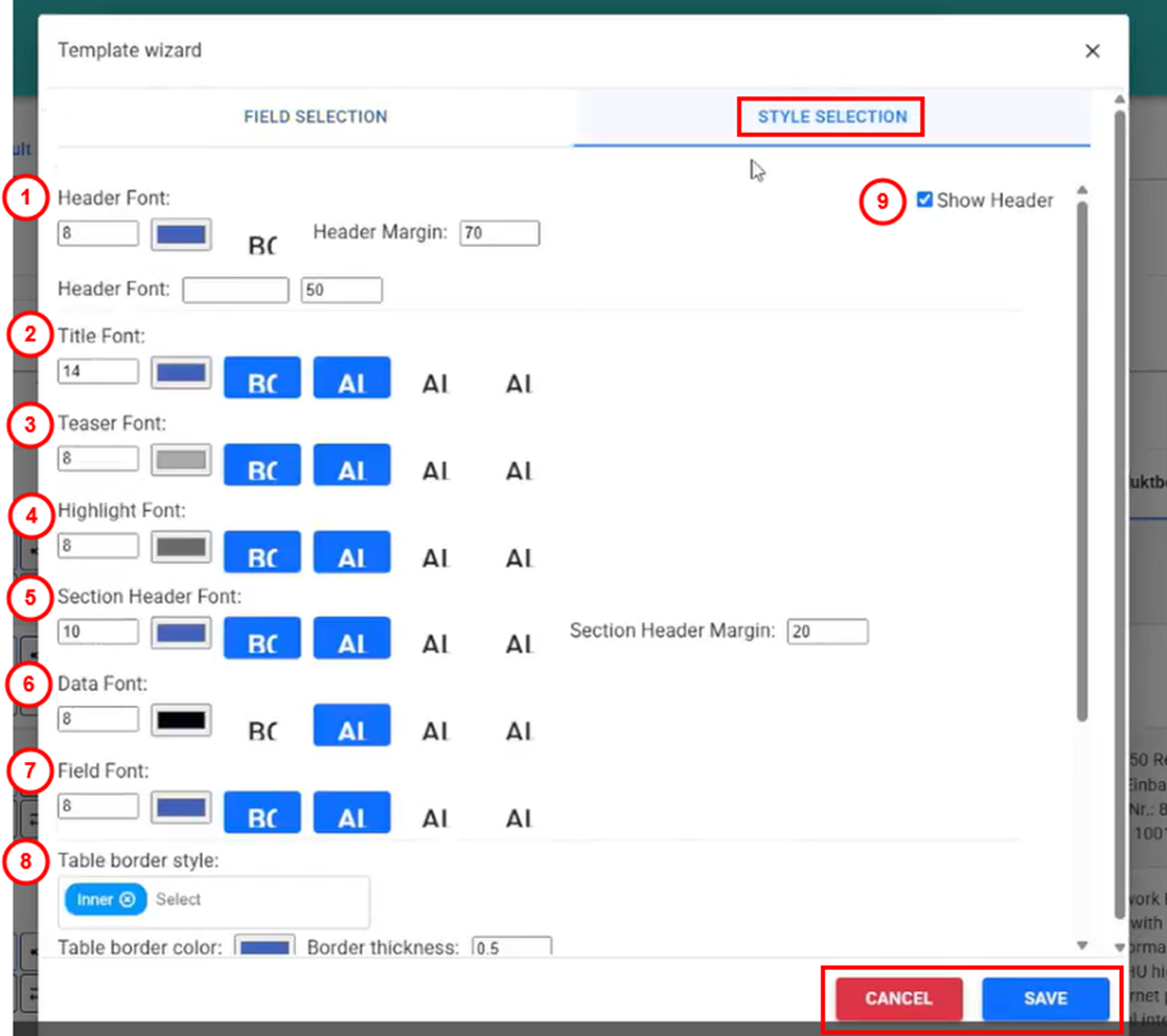 - Header Font – Sets the font style and size for the document header, typically containing company logos or page titles.