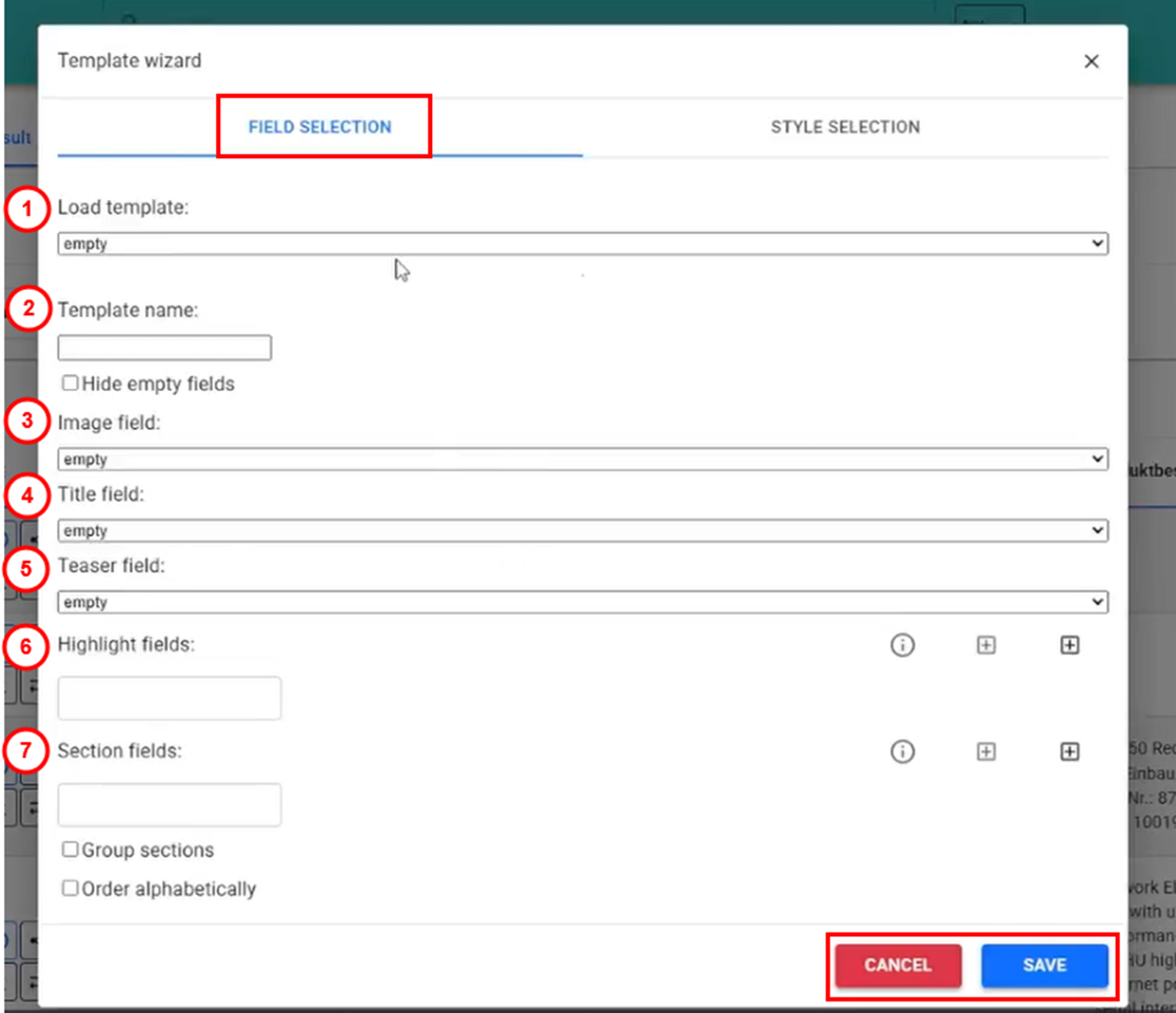 Field Selection Options : The Field Selection panel allows users to define which elements appear in the generated document and how they behave.